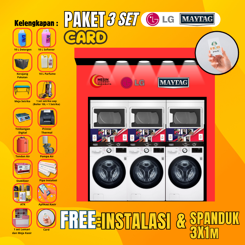 Kini saatnya Anda memilih Paket 3 Set Laundry Card System dari Mesin Laundry Surabaya.