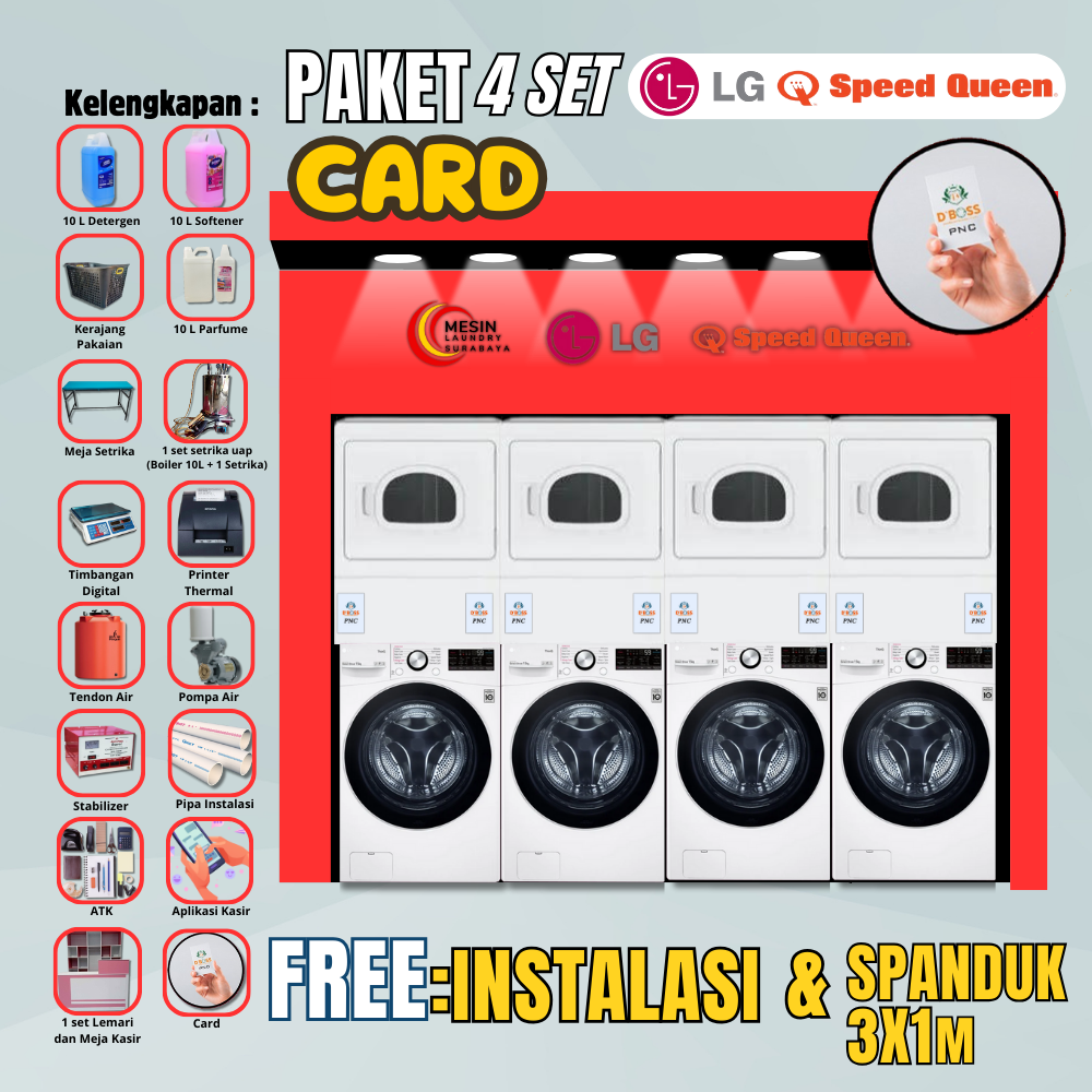 Kini saatnya Anda memilih Paket 4 Set Laundry Card System dari Mesin Laundry Surabaya.
